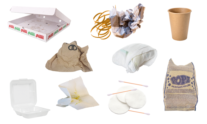 - Papkrus og To Go-kopper (skal i restaffald)