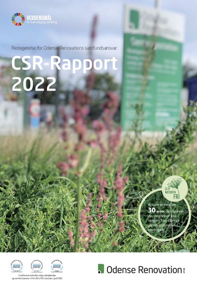 I Odense Renovation arbejder vi målrettet med samfundsansvar. Hvert år udgiver vi en CSR-rapport, hvor læserne kan få et indblik i de mange forskellige former for ansvarlighed, som vi dagligt arbejder med ved Odense Renovation.