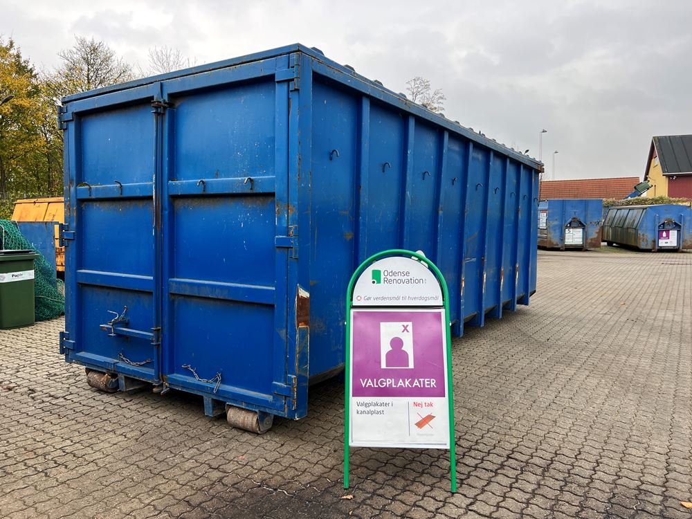 Langt de fleste valgplakater er i dag lavet af det, der hedder 'kanalplast'. For at pladerne fra årets valgkamp kan genanvendes, har Odense Renovation opsat midlertidige containere på alle byens genbrugsstationer. På den måde kan plasten fra valgplakaterne sendes til genanvendelse og blive brugt i nye plastprodukter.