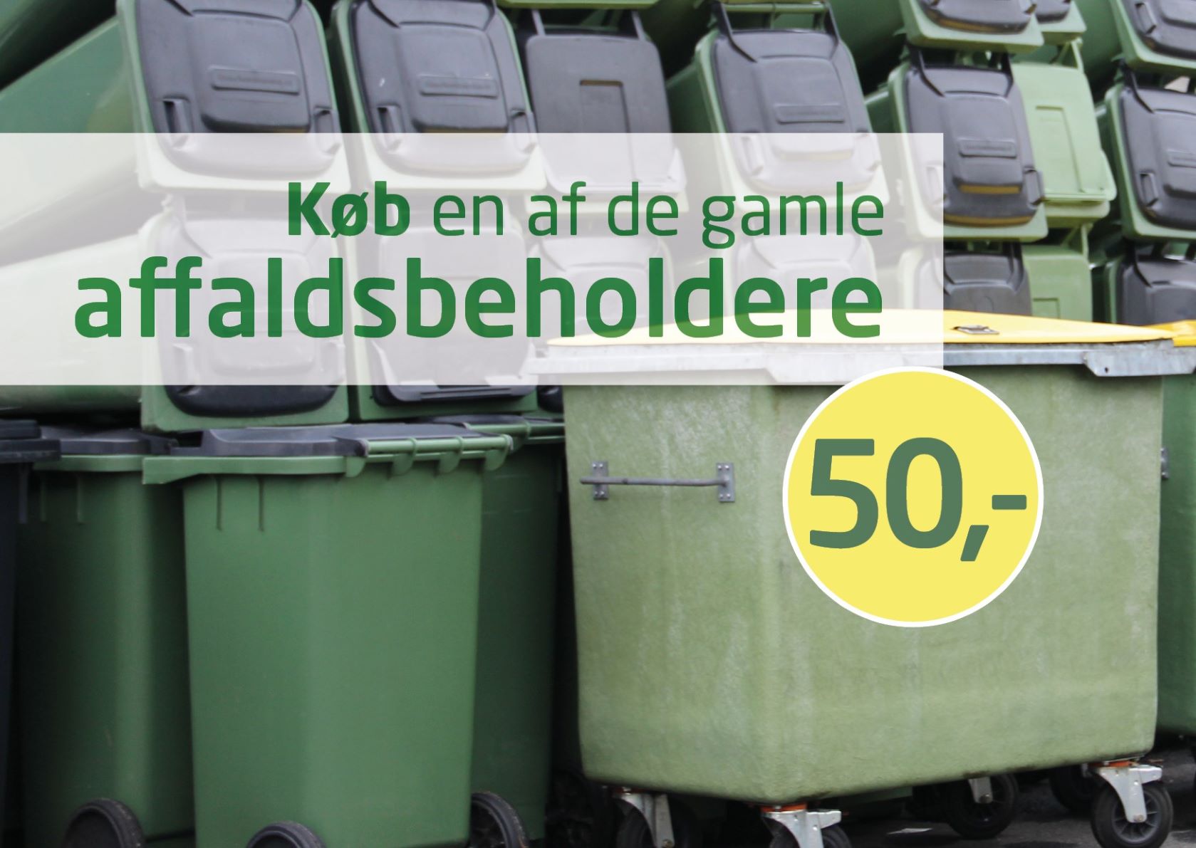 Kom forbi og køb en gammel - men rengjort - affaldsbeholder, som du fremover kan bruge til sortering af plast, haveaffald eller andre gode gøremål. Og nej, vi kommer ikke og tømmer beholderen, det skal du selv sørge for.