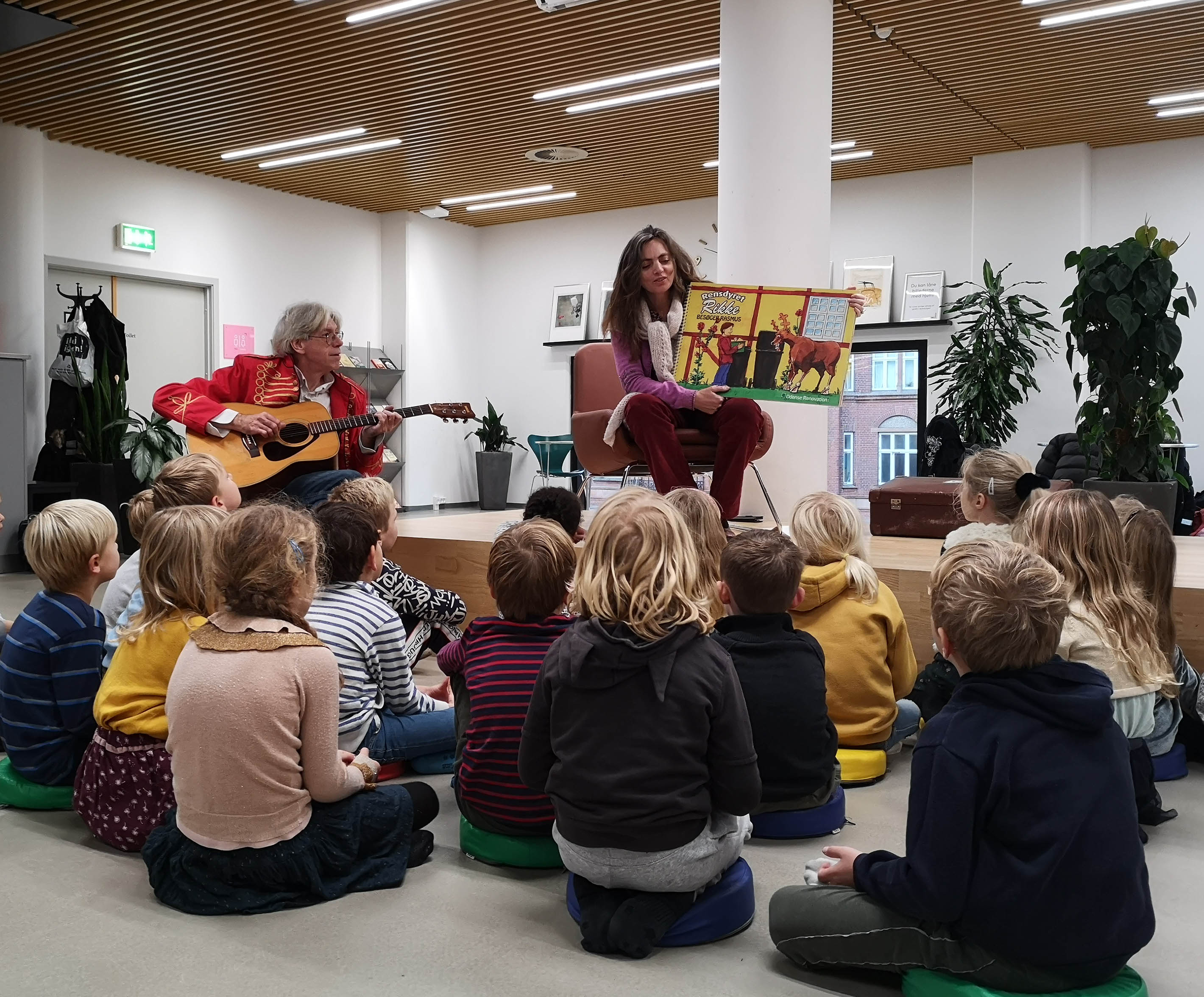 I uge 45 sætter Borgernes Hus fokus på FN’s Verdensmål for Bæredygtig Udvikling, og Odense Renovation deltager med flere udstillinger om affald, sortering og upcycling. I forbindelse med dette arrangement afholdt vi onsdag den 6. november en lancering af Rensdyret Rikke besøger Rasmus med besøg og oplæsning for 0.A fra Åløkkeskolen.