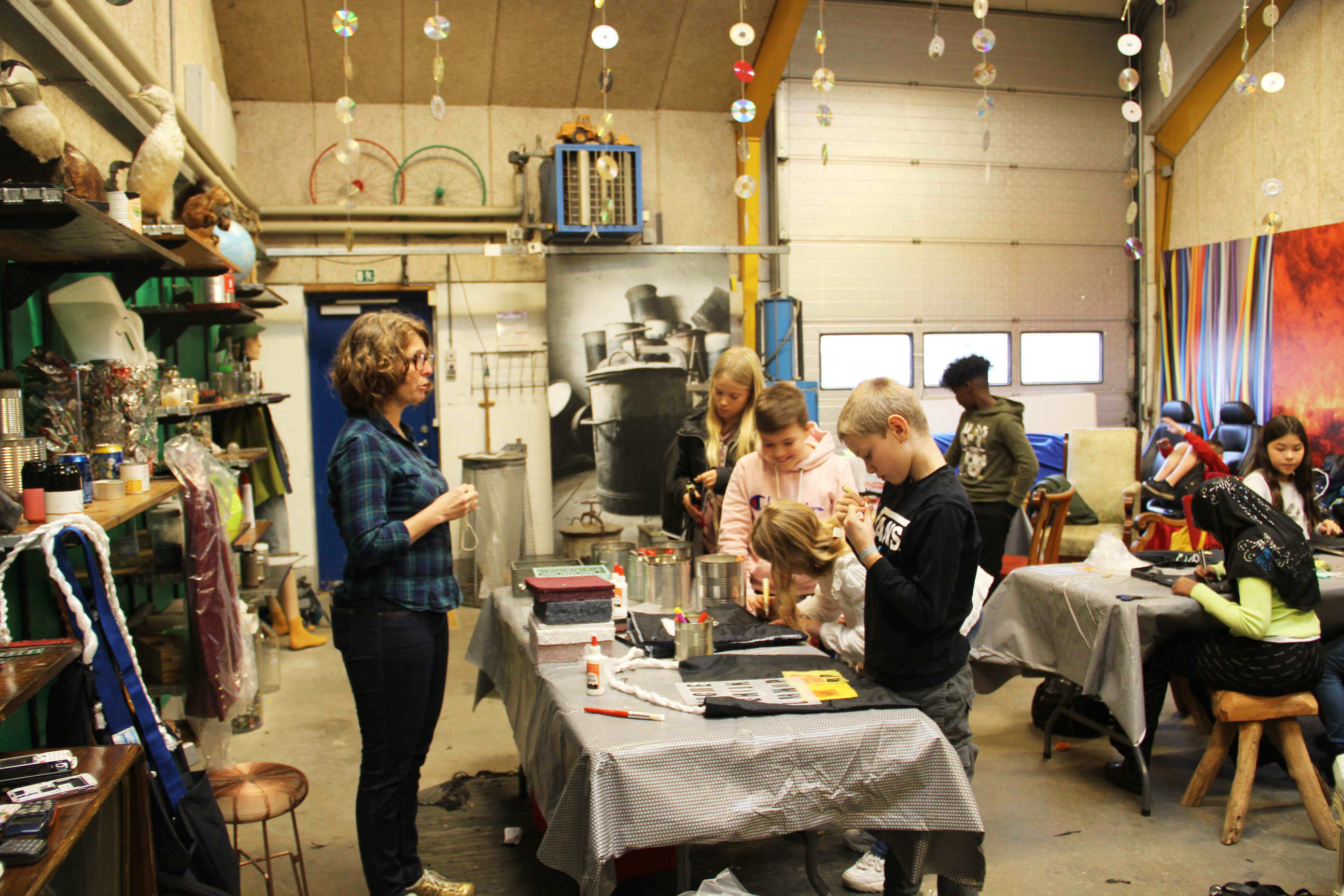 Kreativ workshop, hvor vi bruger overskudsmaterialer til at lave tasker til affaldssortering.