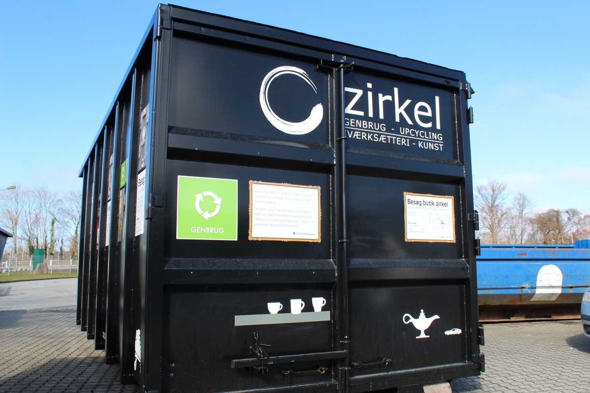 Du kan aflevere genbrugelige effekter til Zirkel via den sorte Zirkel-container, som står på alle 8 genbrugsstationer.