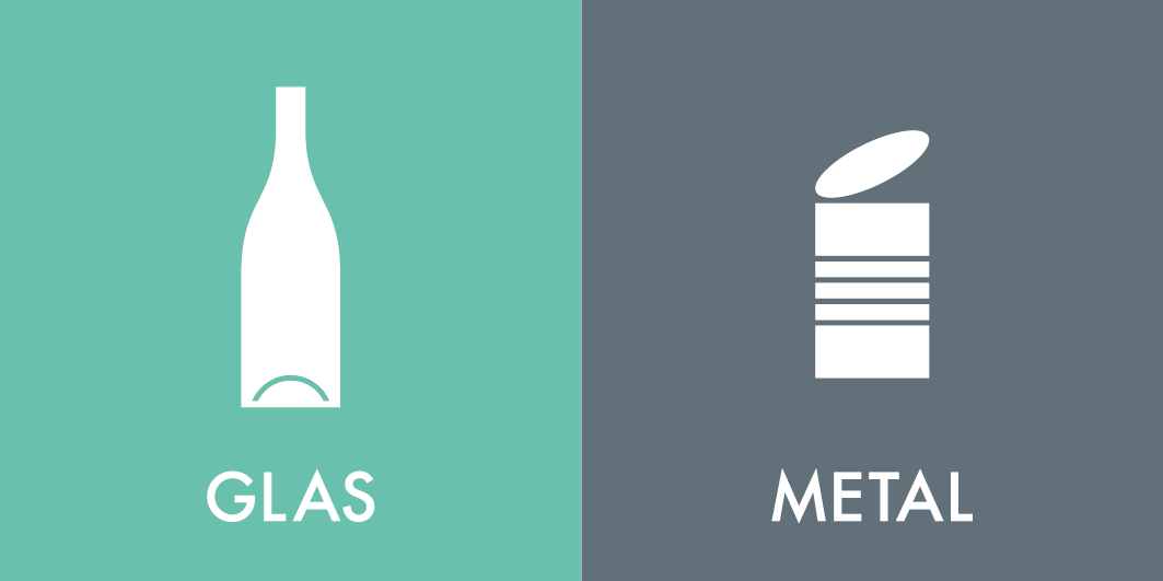 Glas & metal skal være tømt for indhold og/ eller skrabet rent