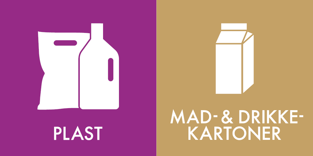 Mad- & drikkekartoner må afleveres løst eller i poser i beholderen.