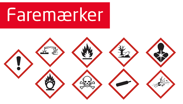 Faremærker fortæller, hvor farligt affaldet er, og hvilken risiko kemikalierne udsætter dig for. Her kan du se en oversigt over faremærkerne – og hvor du skal aflevere emballager med forskellige faremærker henne.