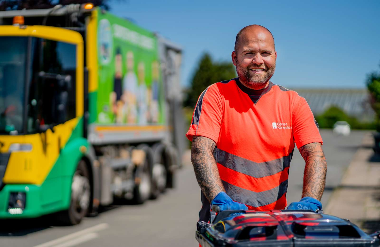 Skraldemanden og -damens arbejdsplads er i trafikken på vejene, foran husene og på fortovene. Hjælp dem ved at vise tålmodighed i trafikken og ved at rydde sne om vinteren.